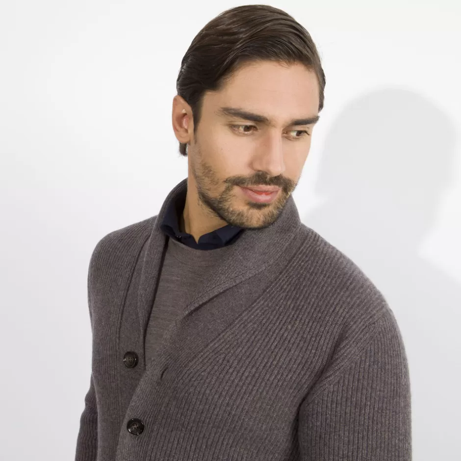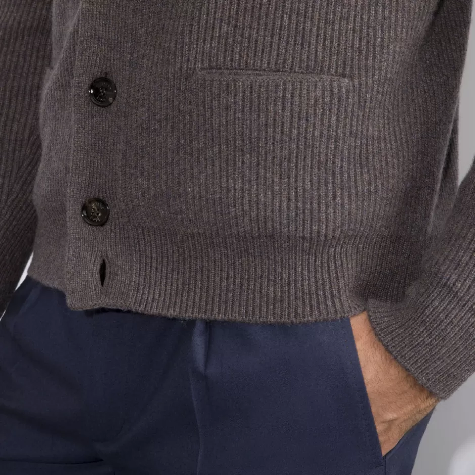 - Offering an impeccably crafted take on a quintessential classic, SR presents this pure cashmere chunky knit cardigan. This versatile layering piece does not compromise on elegance, with a ribbed knit and six-button closure it will surely act as a must-have knitwear piece for this and many seasons to come.