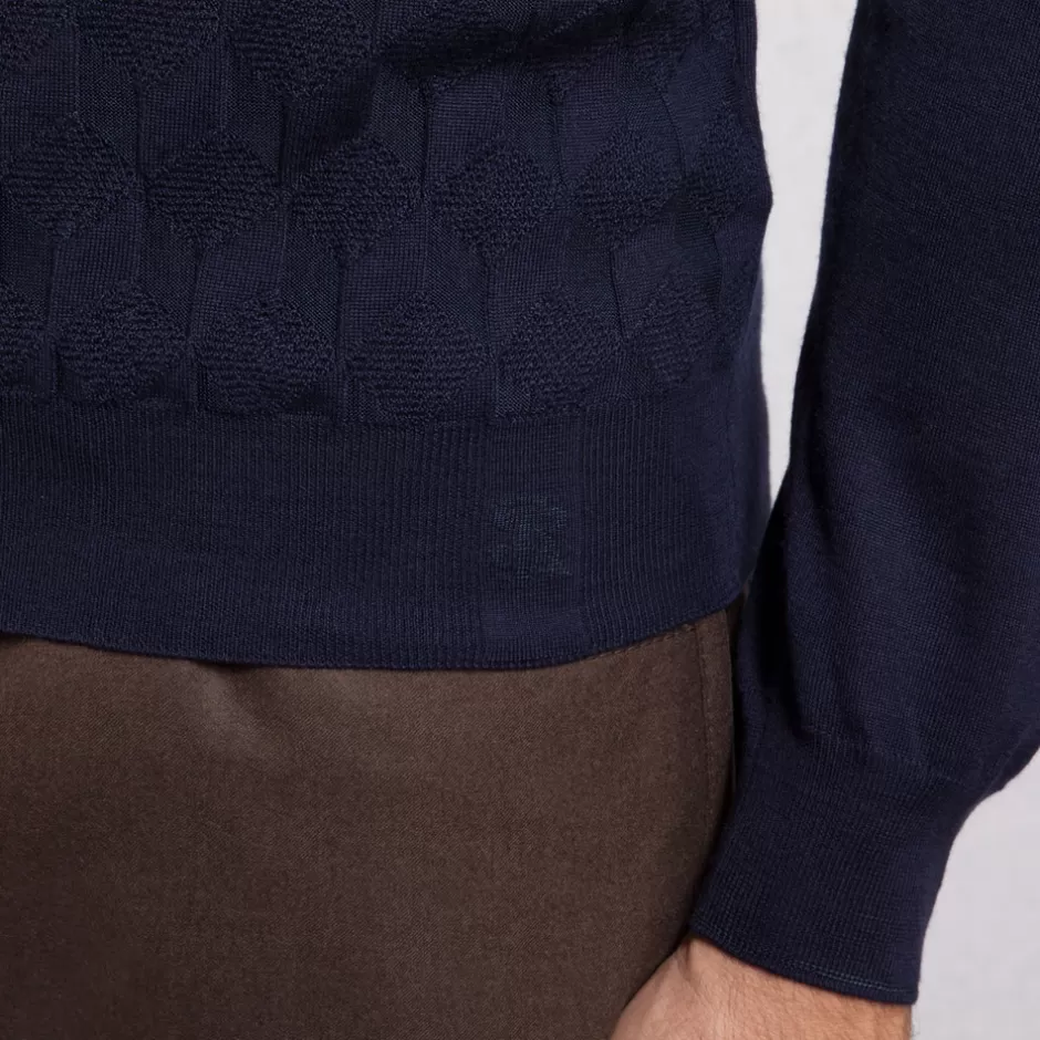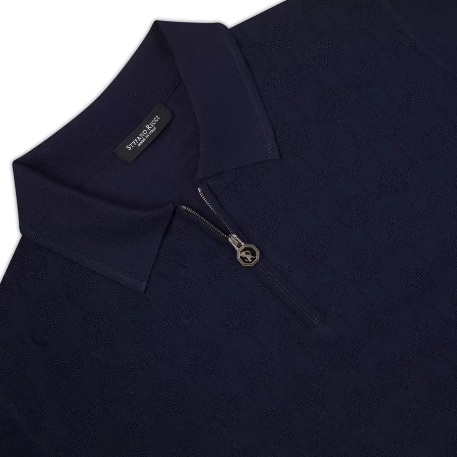 - Handsomely uniting elegance and comfort, SR proffers this wool, silk and cashmere blend zip polo. Delightfully designed with a geometric vanise knit and accented with precious metal galvanised hardware, it will don the wearer with styled charisma.
